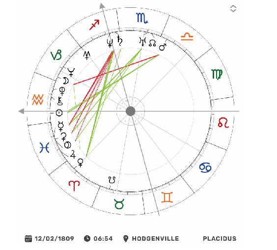 En af de ting der gør Lincolns horoskop særlig interessant er, at han er født under en Saturn/Neptun konjunktion. Saturn og Neptun er jo som bekendt i konjunktion her i 2025/2026 ligesom de var i konjunktion omkring 1989 hvor muren faldt. Lincoln var særligt dedikeret (Saturn) til at kæmpe for de udsatte (Neptun) i samfundet. På hans tid handlede det især om afskaffelsen af slaveriet.